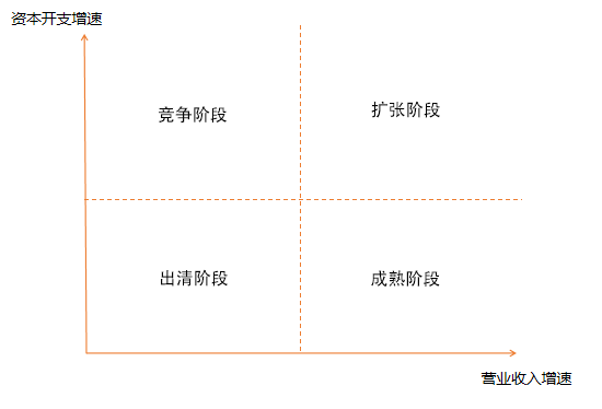 如上图1所示,我们将行业生命周期模型划分为四个阶段,分别是扩张、竞争、出清和成熟阶段。当行业处于不同的阶段,其投资价值也会有明显差异。我希望通过一套标准化的上市公司财务指标,以更为客观和直观的方式来刻画行业的生命周期状态和演变路径,从而相对准确地识别出行业所处的阶段并在相对合适的时点进行投资。