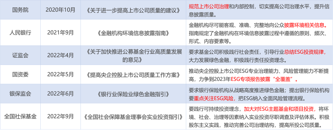 ESG投资深受机构投资者关注,全国社保基金2022年9月发布《全国社会保障基金理事会实业投资指引》,要践行可持续投资理念,加大对ESG主题基金和项目投资,将环境、社会、治理等因素纳入实业投资尽职调查及评估体系。